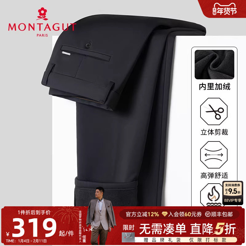 [加绒加厚/弹力裤]梦特娇冬季男士休闲裤商务直筒纯色长裤子保暖J