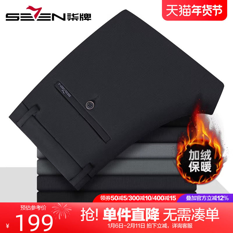 【高弹加绒】柒牌弹力休闲裤男 2025冬季新款保暖商务直筒长裤子