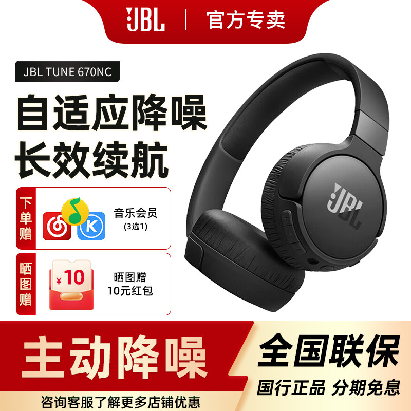 JBL T670NC头戴式蓝牙耳机主动降噪长续航游戏耳麦无线蓝牙耳机