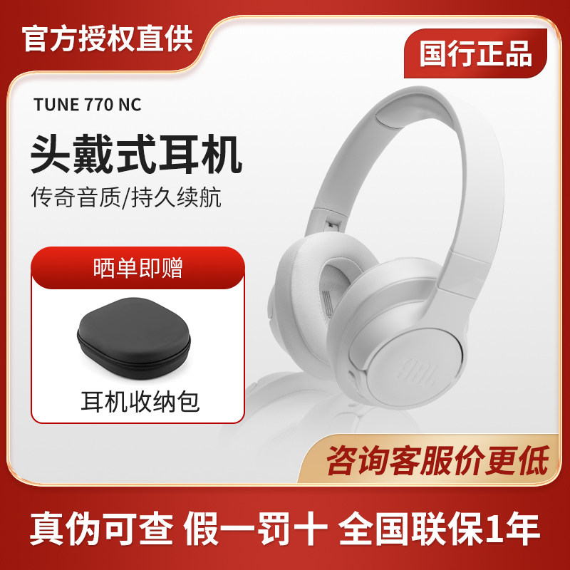 JBL头戴式耳机T770NC游戏电竞新款挂脖式降噪真无线蓝牙耳机