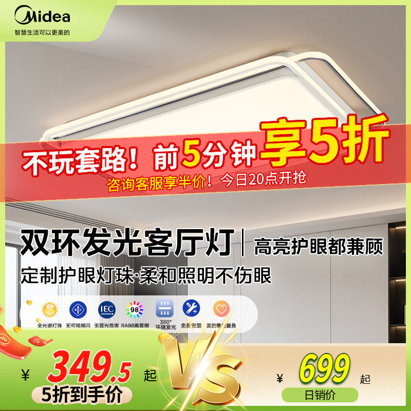 补贴15%美的客厅吸顶灯全光谱护眼LED现代简约全屋灯具组合套餐Z1