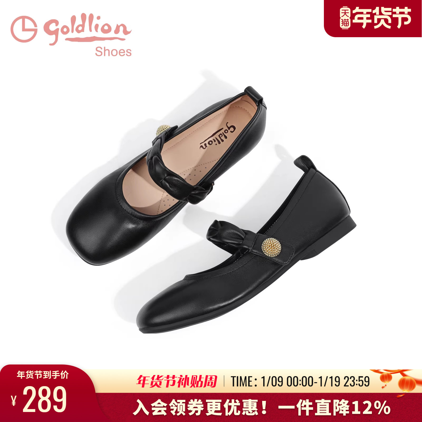 金利来女鞋春秋软皮软底芭蕾舞单鞋舒适平底鞋真皮浅口玛丽珍鞋女
