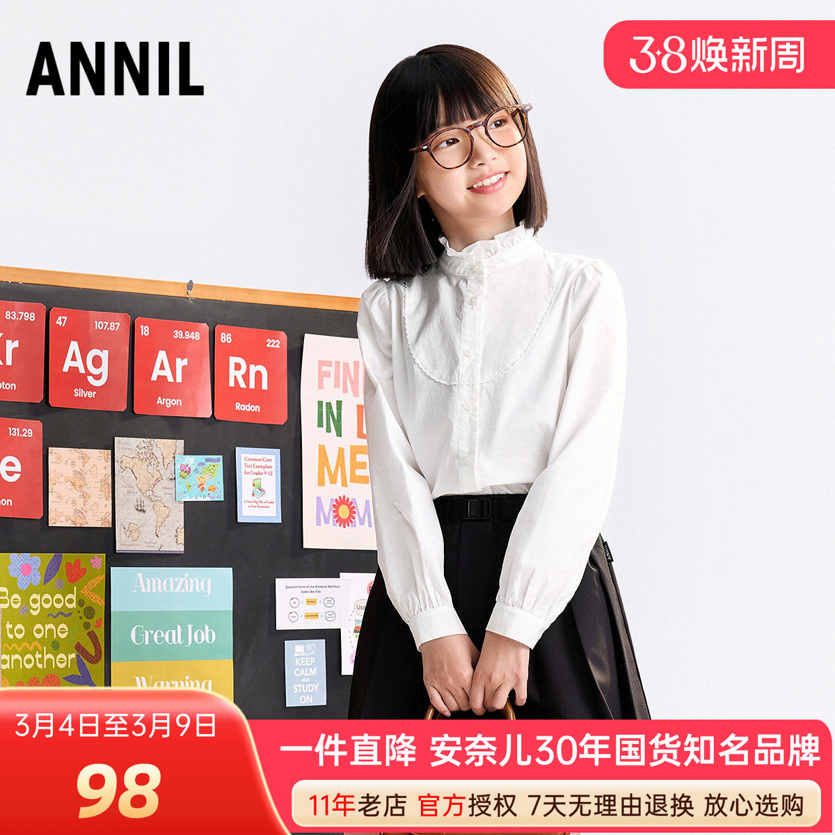 安奈儿女童装全棉立领长袖衬衣2025秋新款学院风休闲衬衫白色纯棉