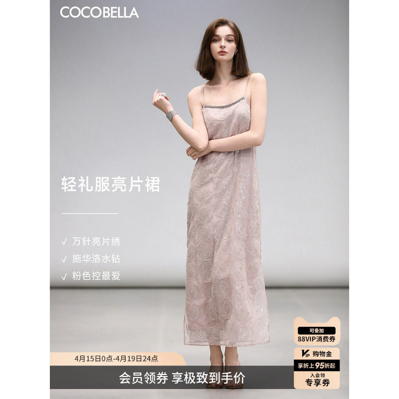 COCOBELLA重工亮片盘绣吊带裙女温柔度假风优雅气质连衣裙FR7091