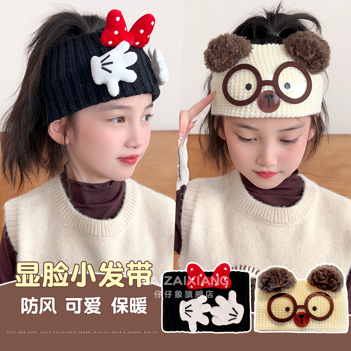 儿童发带女童针织头带新款宝宝发饰可爱卡通米奇发箍秋冬保暖头饰