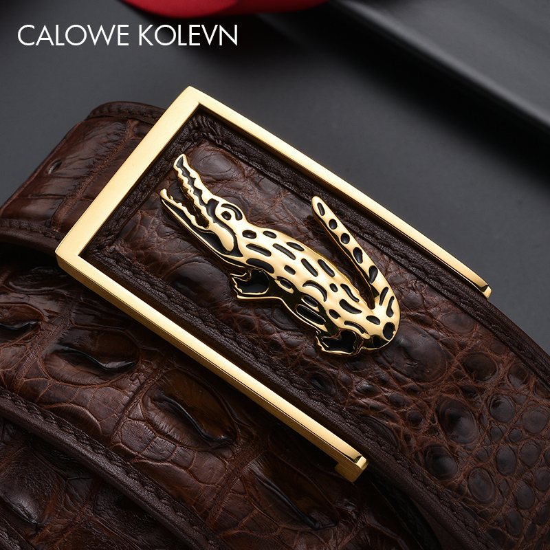 英国CALOWE KOLEVN鳄鱼皮皮带男士真皮自动扣高档奢侈品商务裤带