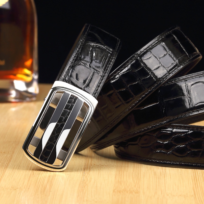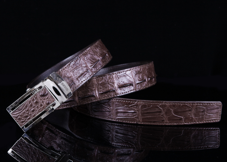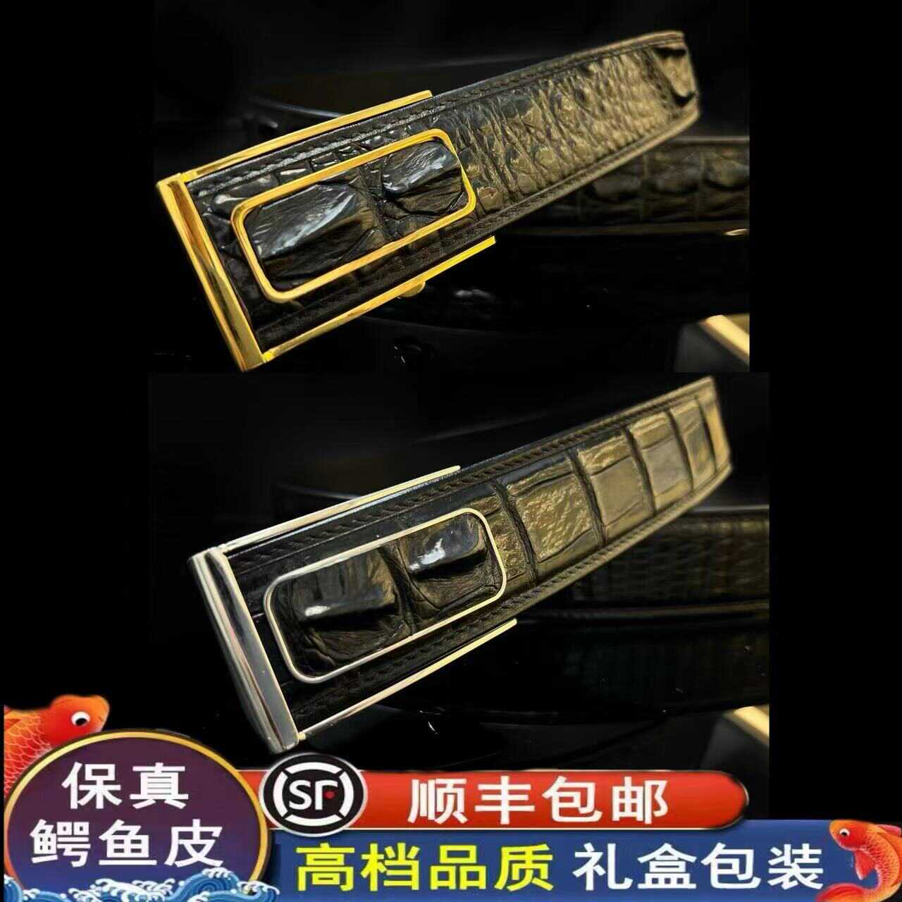 3.8宽自动打眼保真鳄鱼皮皮带男士骨皮腰带高档潮休闲真皮商务