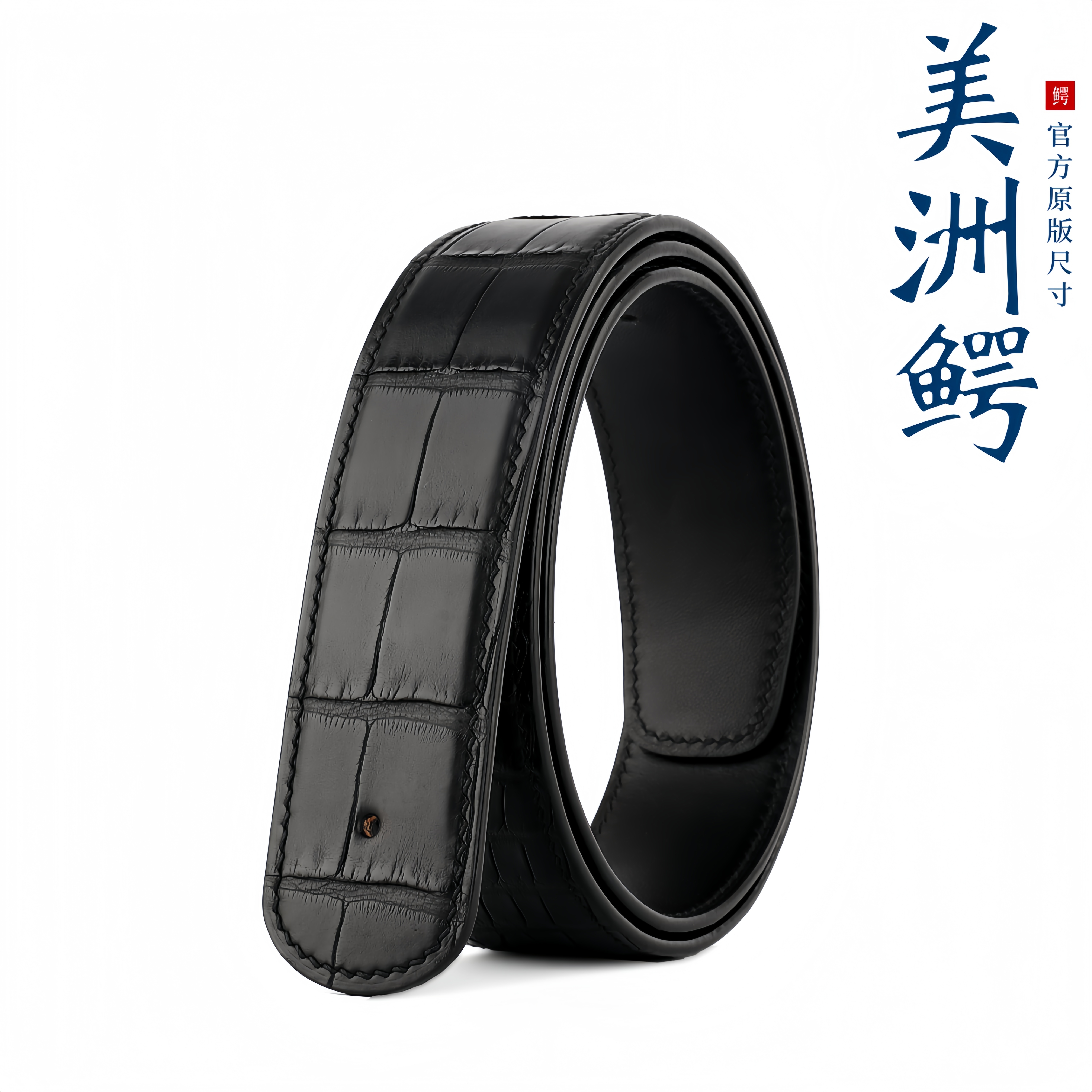 莫仕顿高光鳄鱼皮皮带男尼罗美洲鳄湾鳄定制无头带身送礼鳄鱼腰带