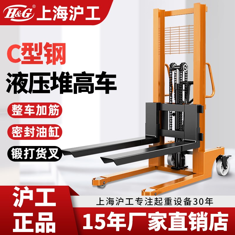 沪工手动堆高车液压升降叉车油压升高车搬运装卸车铲车2吨推高车