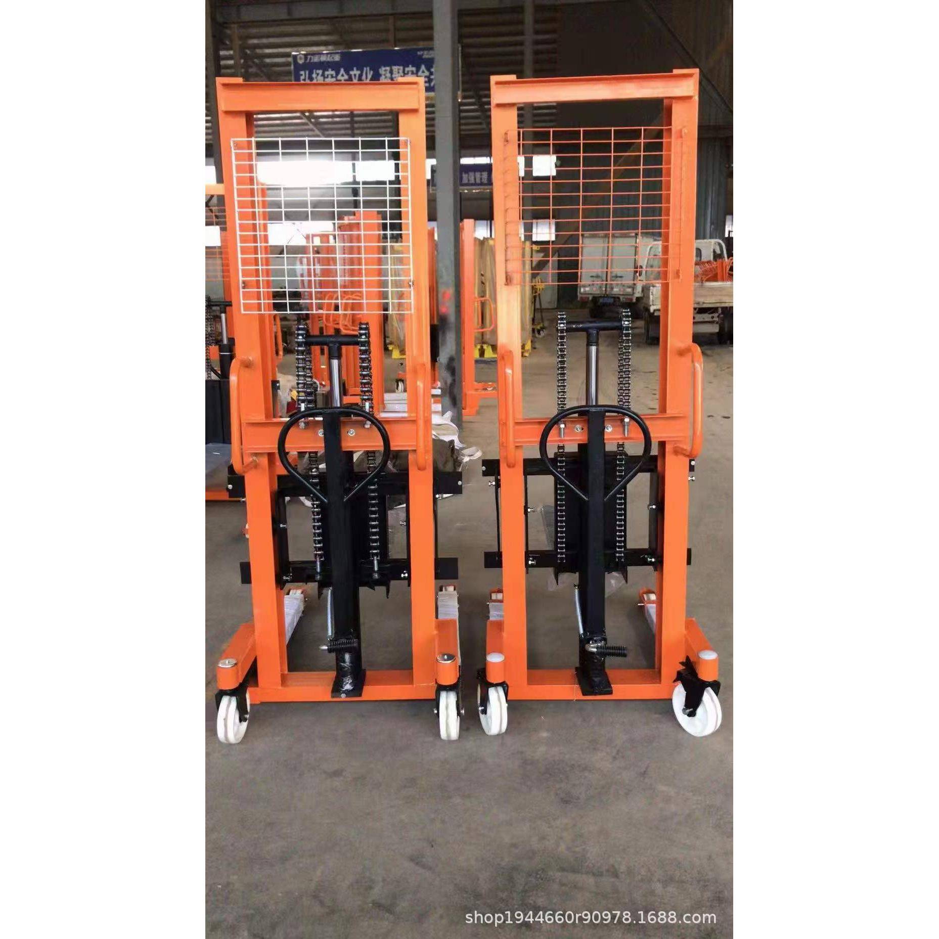 手动液压堆高车 铁塑两用油桶倒料车 1吨2吨手动搬运车升高叉车