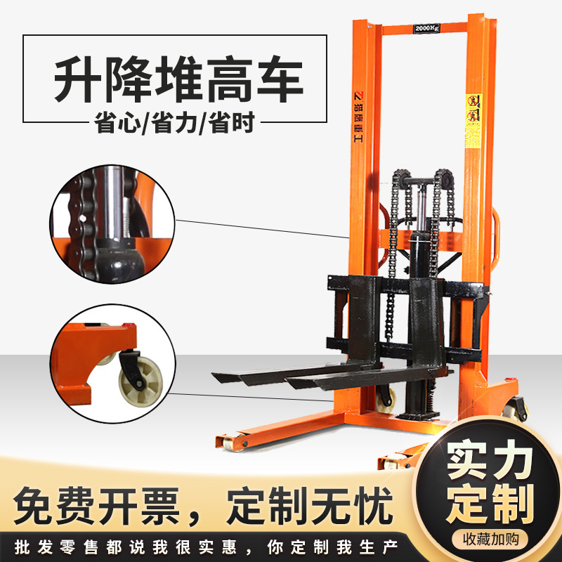 手动堆高车1吨2T吨小型升降装卸升高车液压搬运车手动液压堆高车