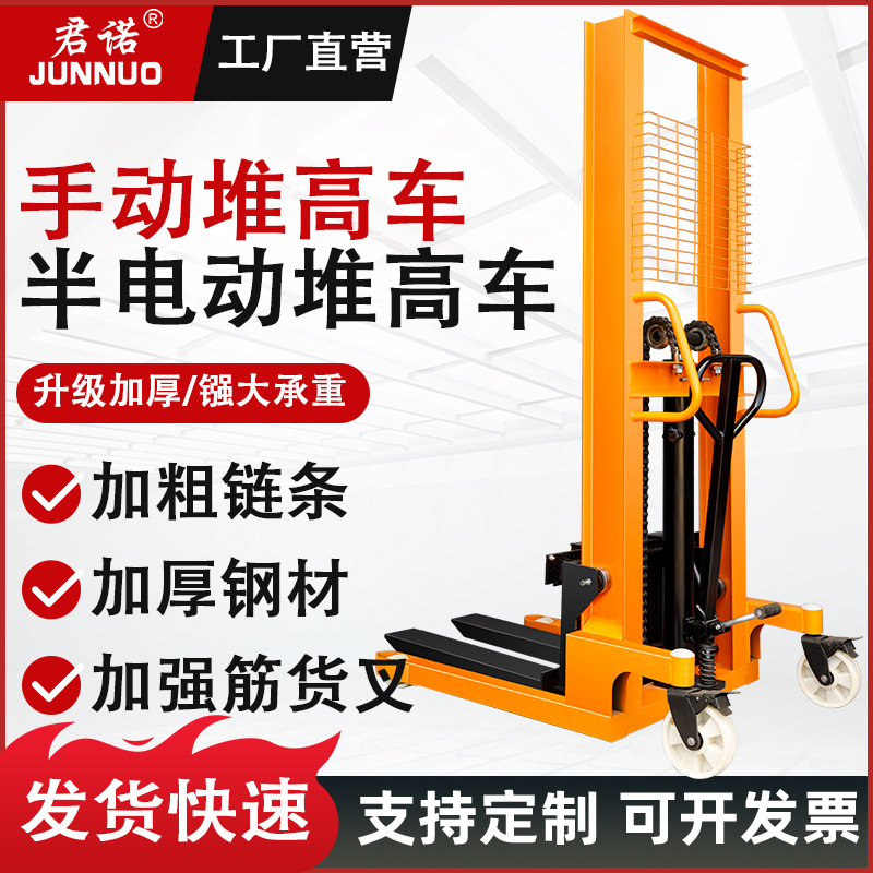 手动液压堆高车半电动堆高车2吨电动叉车推高车手动搬运升降叉车