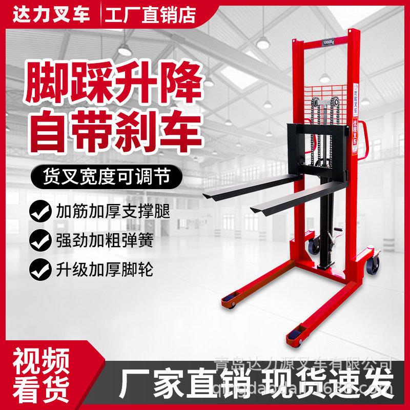 手动液压堆高车升高车叉车搬运车装卸车小型铲车1吨2吨手推升降车