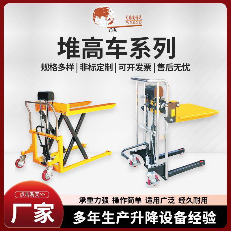手动液压堆高车随车叉车升高车人力升降车液压车铲车加厚堆垛升高