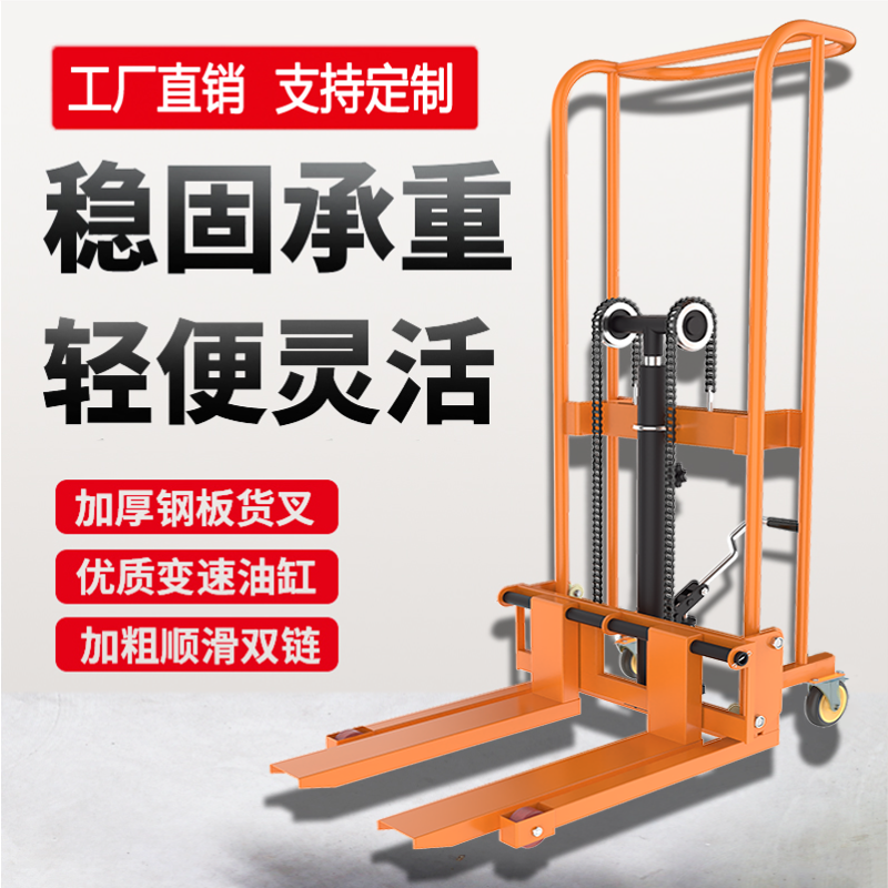 手动随车叉车微型叉车小型升高车堆高车液压搬运车升降手动堆高车