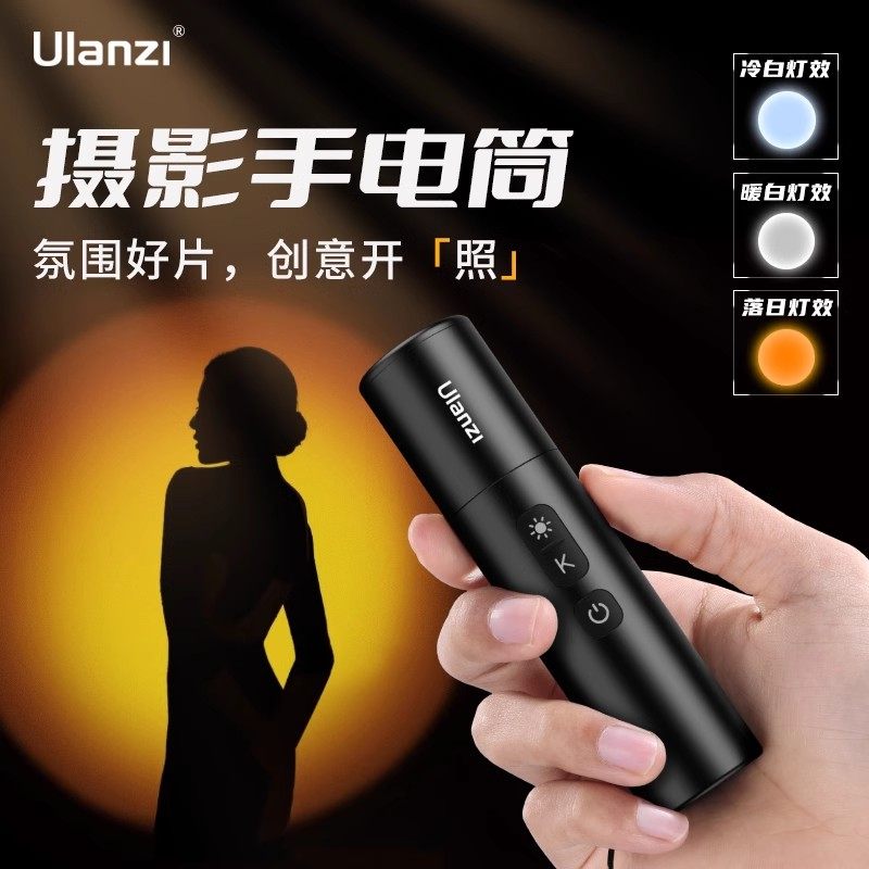 Ulanzi优篮子LM07摄影可变焦手电筒冷暖双色温可调摄影摄像直播户外氛围补光灯人像拍照打光灯造影写真