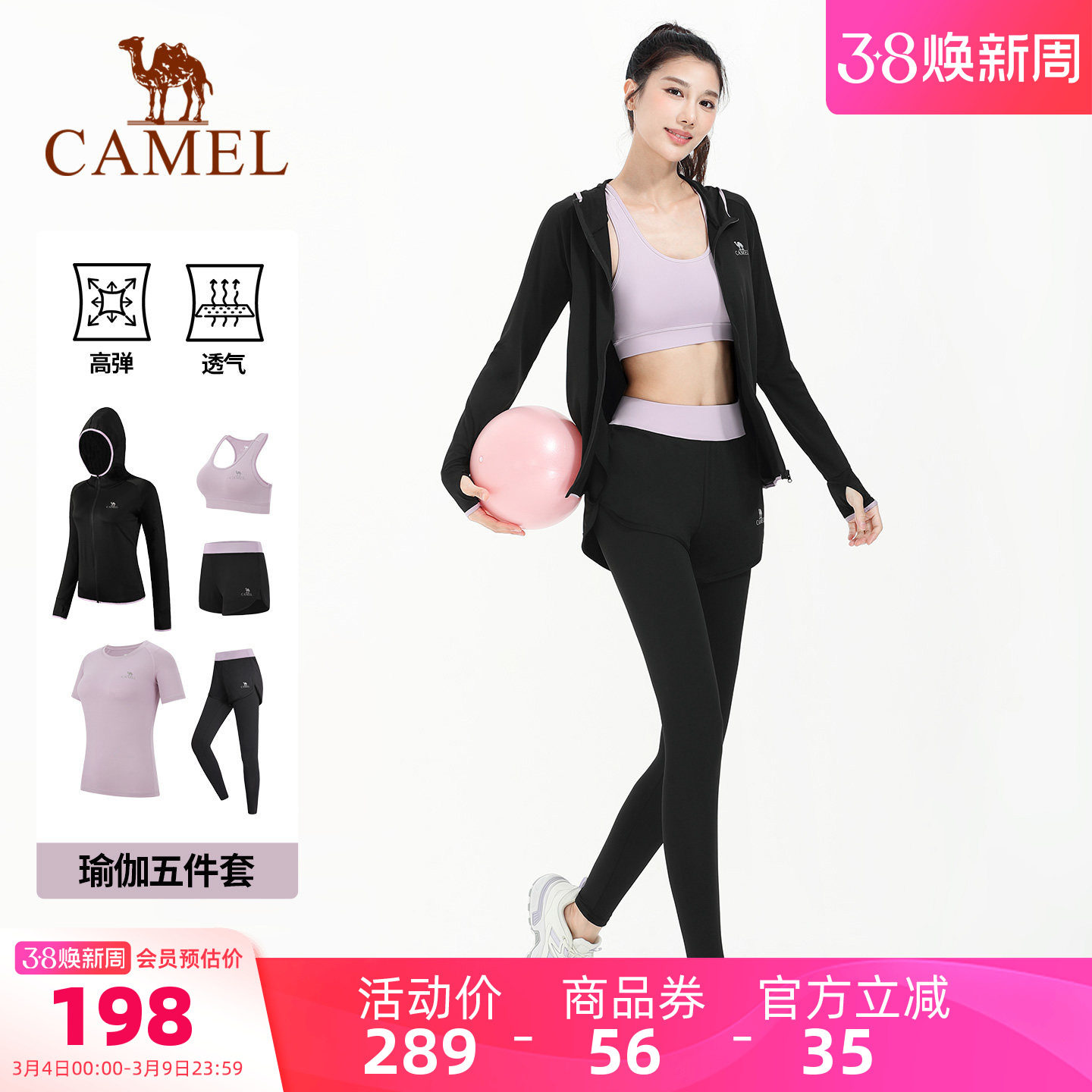 骆驼瑜伽套装女款春季透气薄款跑步运动服时尚修身显瘦健身五件套