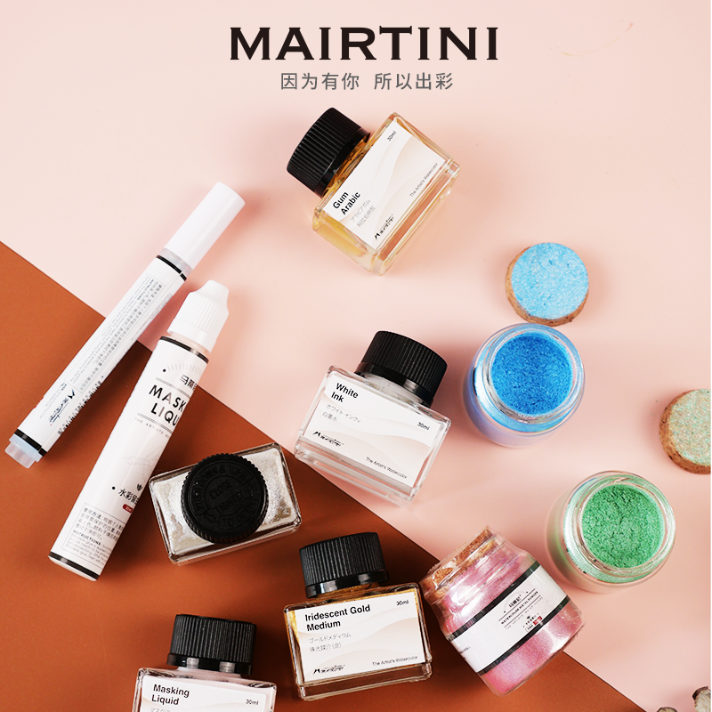 马蒂尼水彩留白液30ML美术生专用留白胶白墨水牛胆汁阿拉伯胶珠光媒介金色银色高光覆盖液水彩画颜料工具