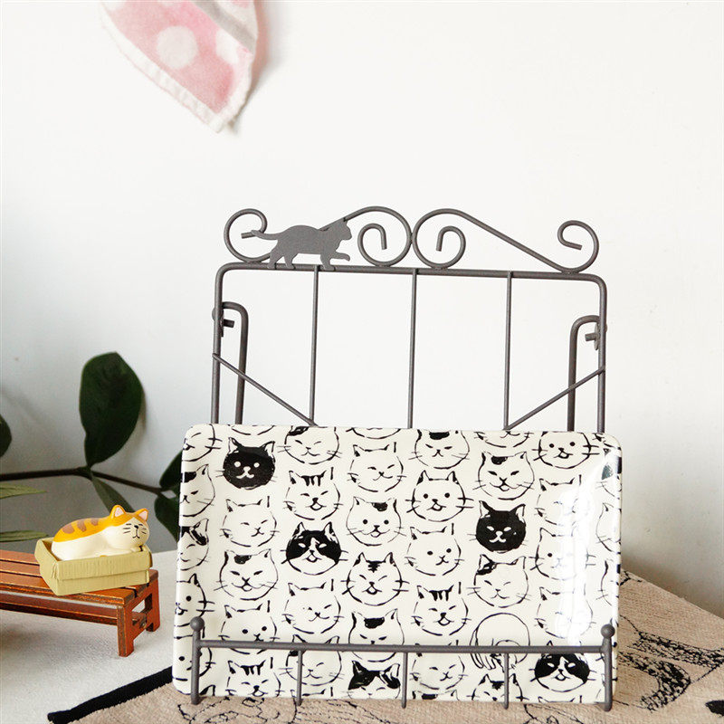 猫部杂货 日系小黑猫铁艺摆件 复古铁艺菜谱图册展示架 ipad支架