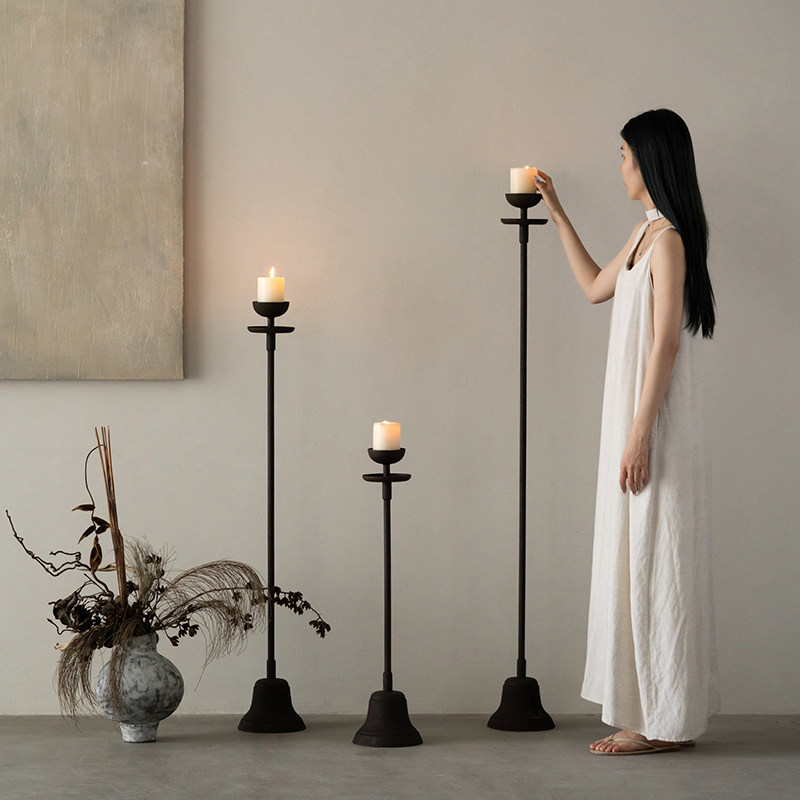 复古黑色罗马柱烛台铁艺摆件蜡烛香薰台座法式家用餐桌氛围感装饰