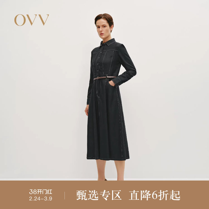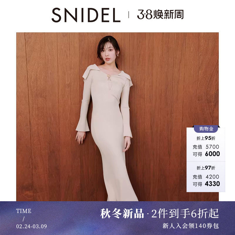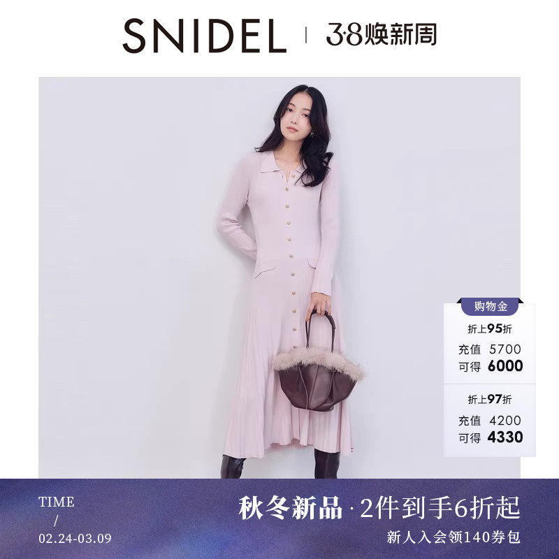 SNIDEL2025秋冬新品时尚翻领单排扣长袖收腰针织连衣裙SWNO255047
