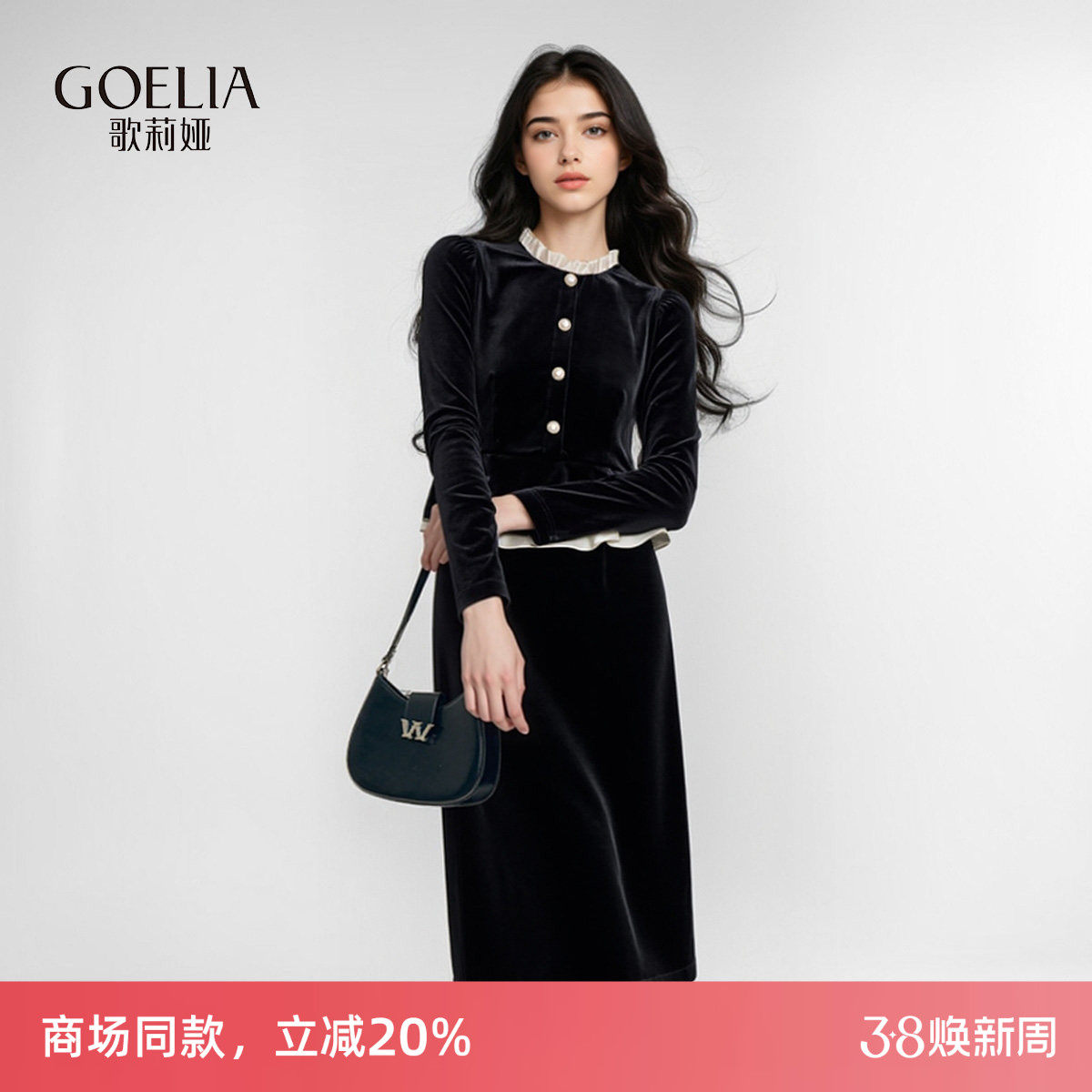 歌莉娅丝绒连衣裙女秋冬穿搭赫本风重要场合大方得体显瘦长袖裙子