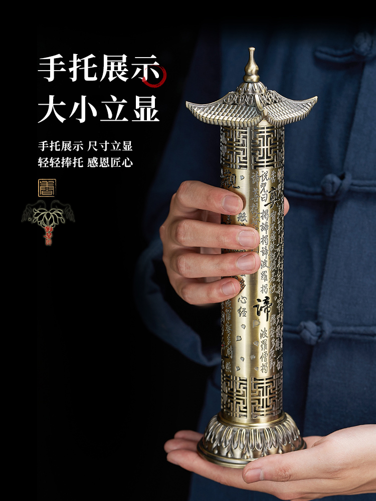 创意心经立式香炉香薰炉复古华盖祥云线香插茶道长型香筒中式摆件