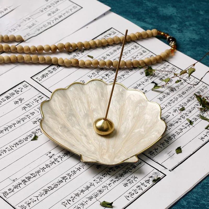 珐琅合金荷花线香插居室檀香盘香炉点香盘香托沉香线香炉香立香座