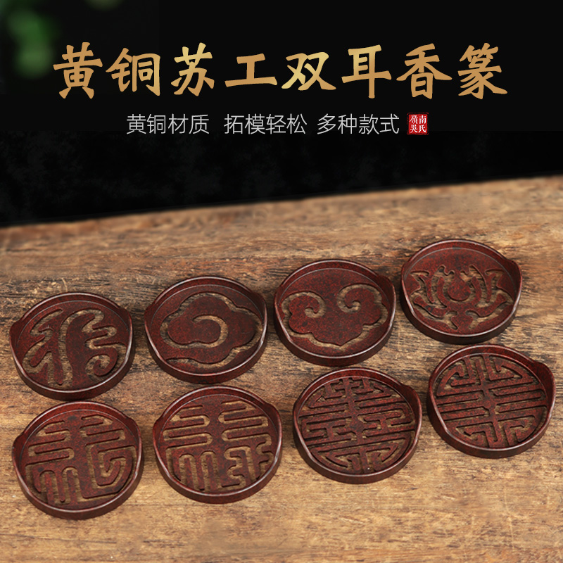 苏工黄铜双耳香篆香拓打拓香篆香模工具香粉香炉香道香具用品复古
