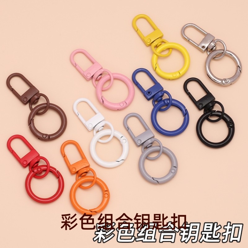 糖果色弹簧扣甜甜圈+门扣DIY材料钥匙扣环圈玩偶挂件链条小挂饰