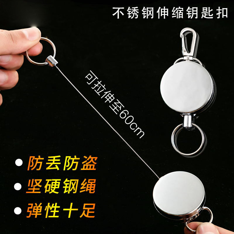 户外弹力伸缩钥匙扣环圈链伸缩钢丝绳回弹拉伸易拉扣链条防丢挂绳