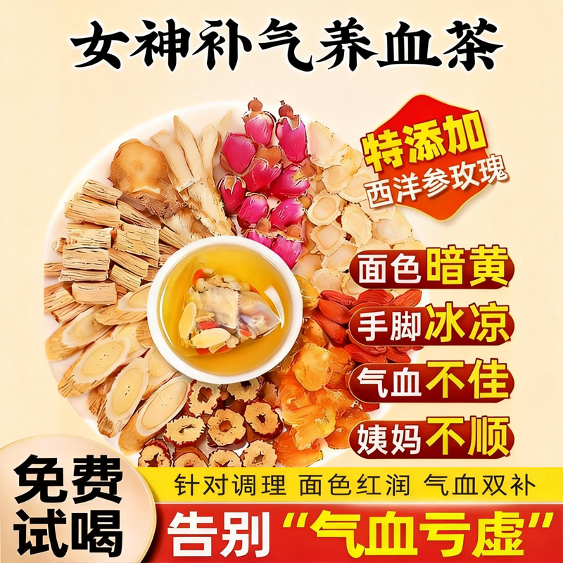 黄芪当归党参红枣枸杞玫瑰花补气补血养颜茶气血双补养生茶补气血