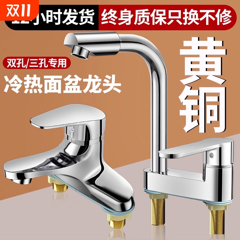 双孔洗脸盆水龙头卫生间台盆机械臂三孔冷热面盆厨房全铜神器老式