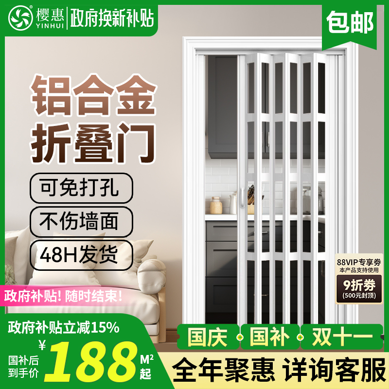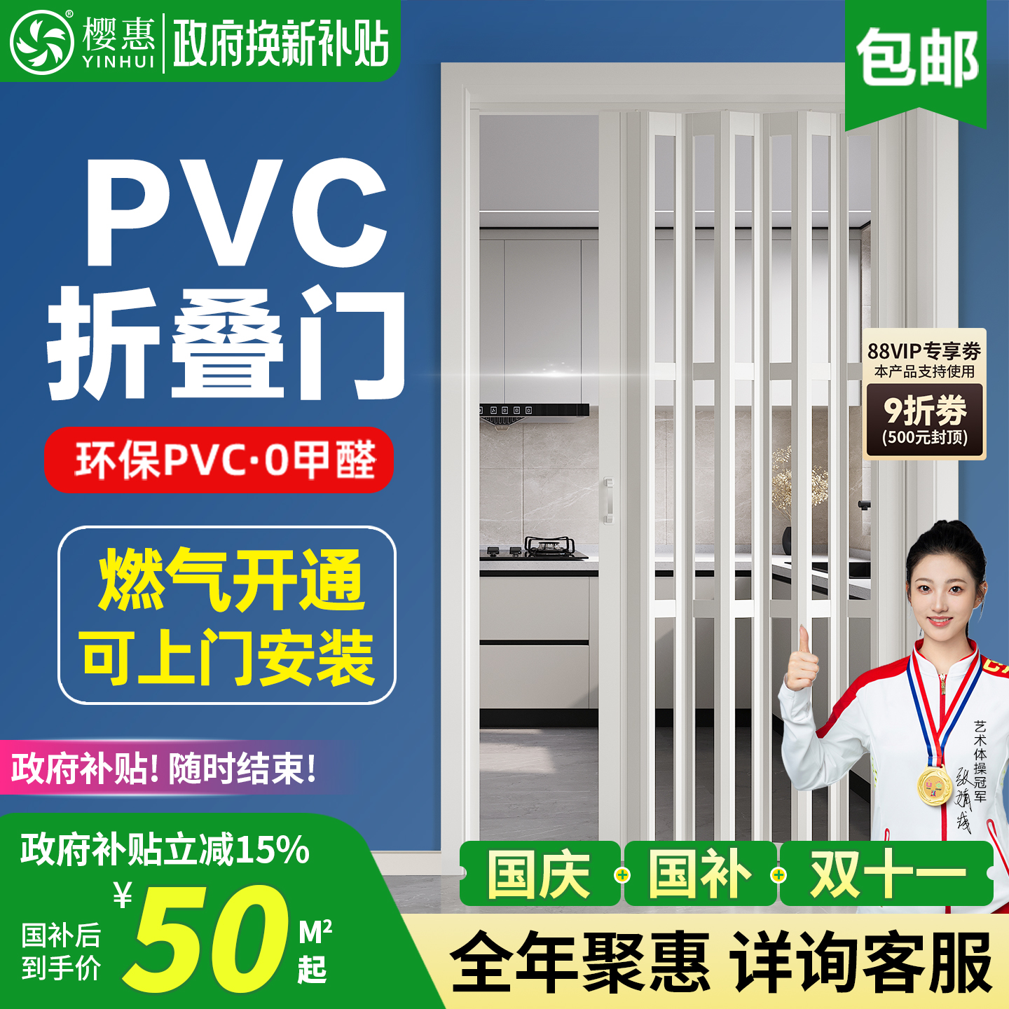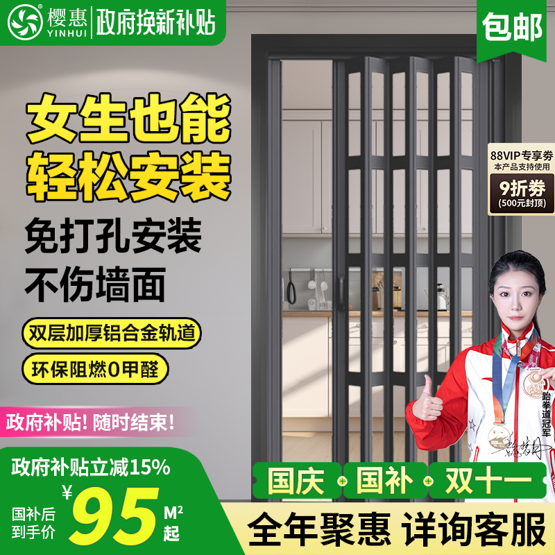 PVC折叠门 免打孔折叠门开放式厨房开通燃气临时门简易商铺隔断门
