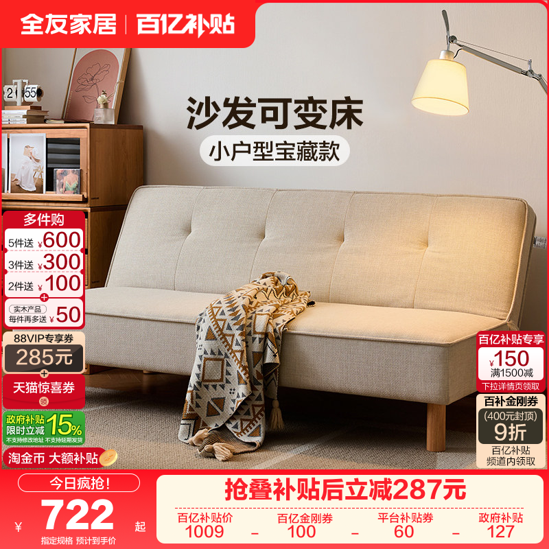 全友家居现代简约沙发床折叠两用2025新款小户型客厅实木脚家具