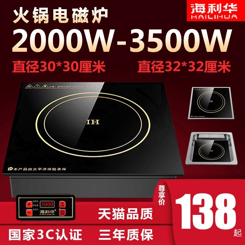 海利华商用火锅电磁炉嵌入式方形3500w大功率下沉线控饭酒店专用