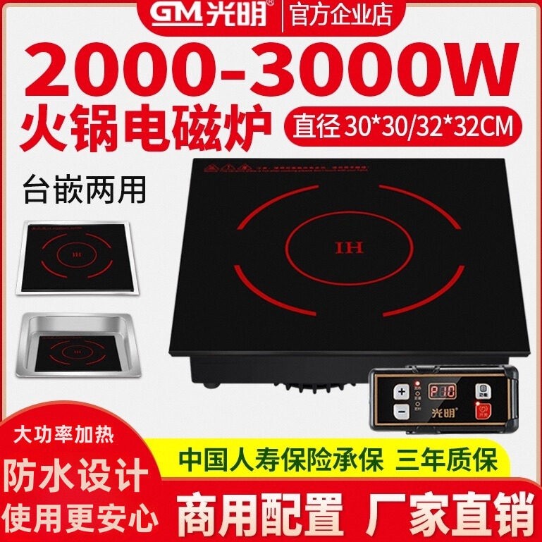 光明方形火锅电磁炉嵌入式商用触控大功率3000W饭店平面下沉摸线