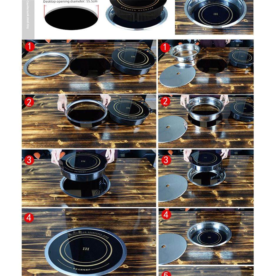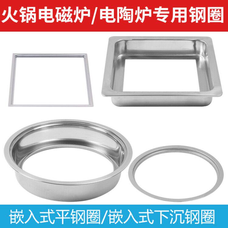 火锅电磁炉嵌入式平嵌下沉钢圈方形圆形火锅店专用火锅桌不锈钢盖