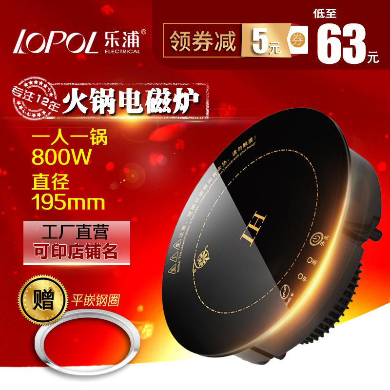 乐浦商用火锅电磁炉嵌入式方形圆形触摸线控800W 镶嵌式一人一锅