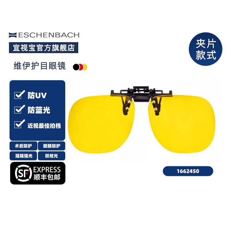 德国ESCHENBACH宜视宝 防蓝光电脑护目镜术后眼镜钓鱼偏光镜夹片