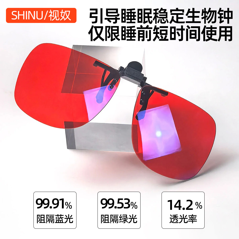 引导睡眠防蓝光红夹片蓝光绿光阻隔99%夜间蓝光高效防护桔夹片98%