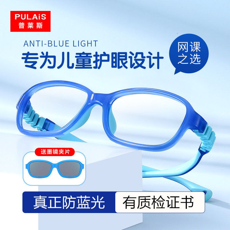 普莱斯儿童防蓝光眼镜护眼抗辐射疲劳防脱落近视墨镜夹片防紫外线