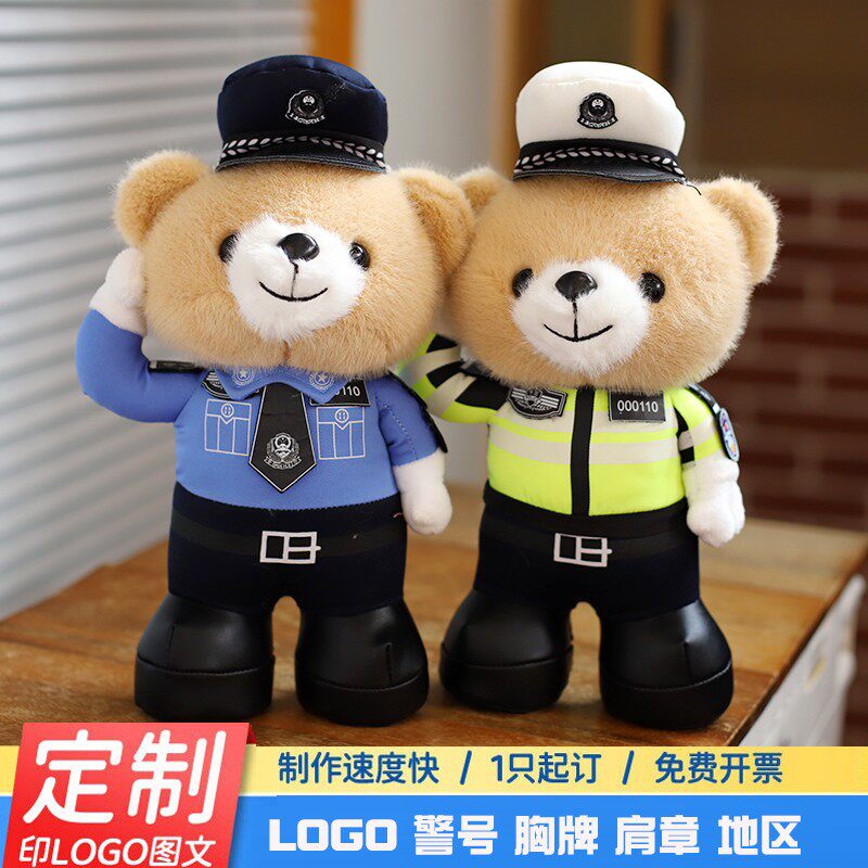 交警小熊毛绒玩具敬礼熊猫公仔警察泰迪熊玩偶公安精品布娃娃logo