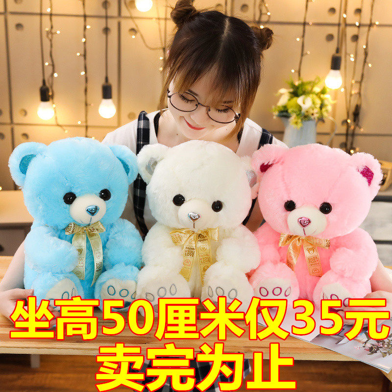 发光泰迪熊毛绒玩具女生抱抱熊女孩玩具熊猫公仔布娃娃玩偶送女友