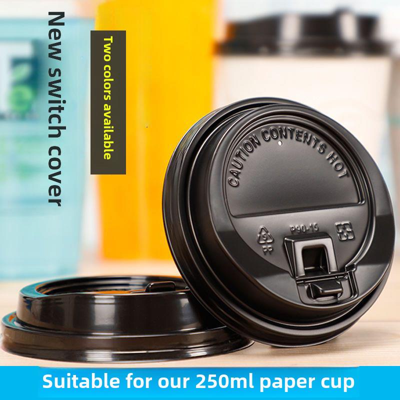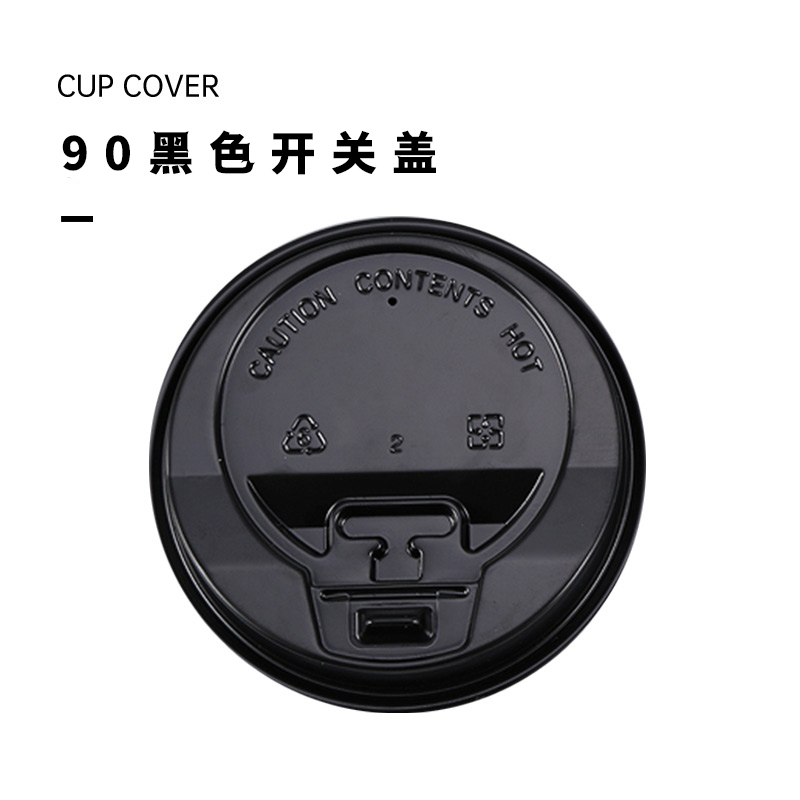 12/16oZ加厚一次性杯盖奶茶豆浆咖啡饮料杯盖黑白色开关盖100只