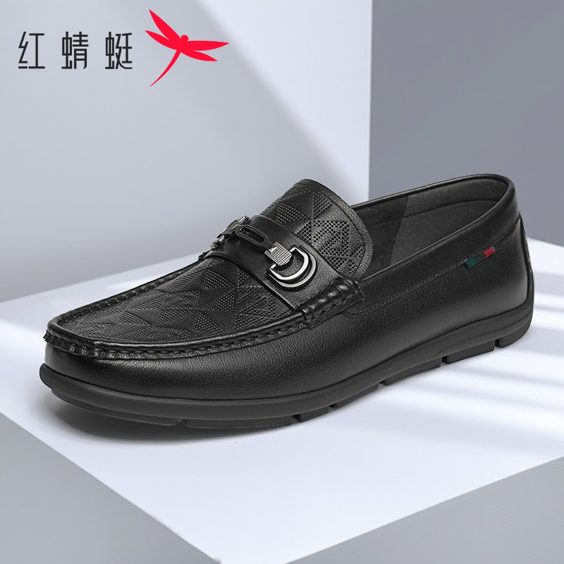 红蜻蜓男士皮鞋新款一脚蹬男鞋商务休闲豆豆乐福鞋软底真皮爸爸鞋