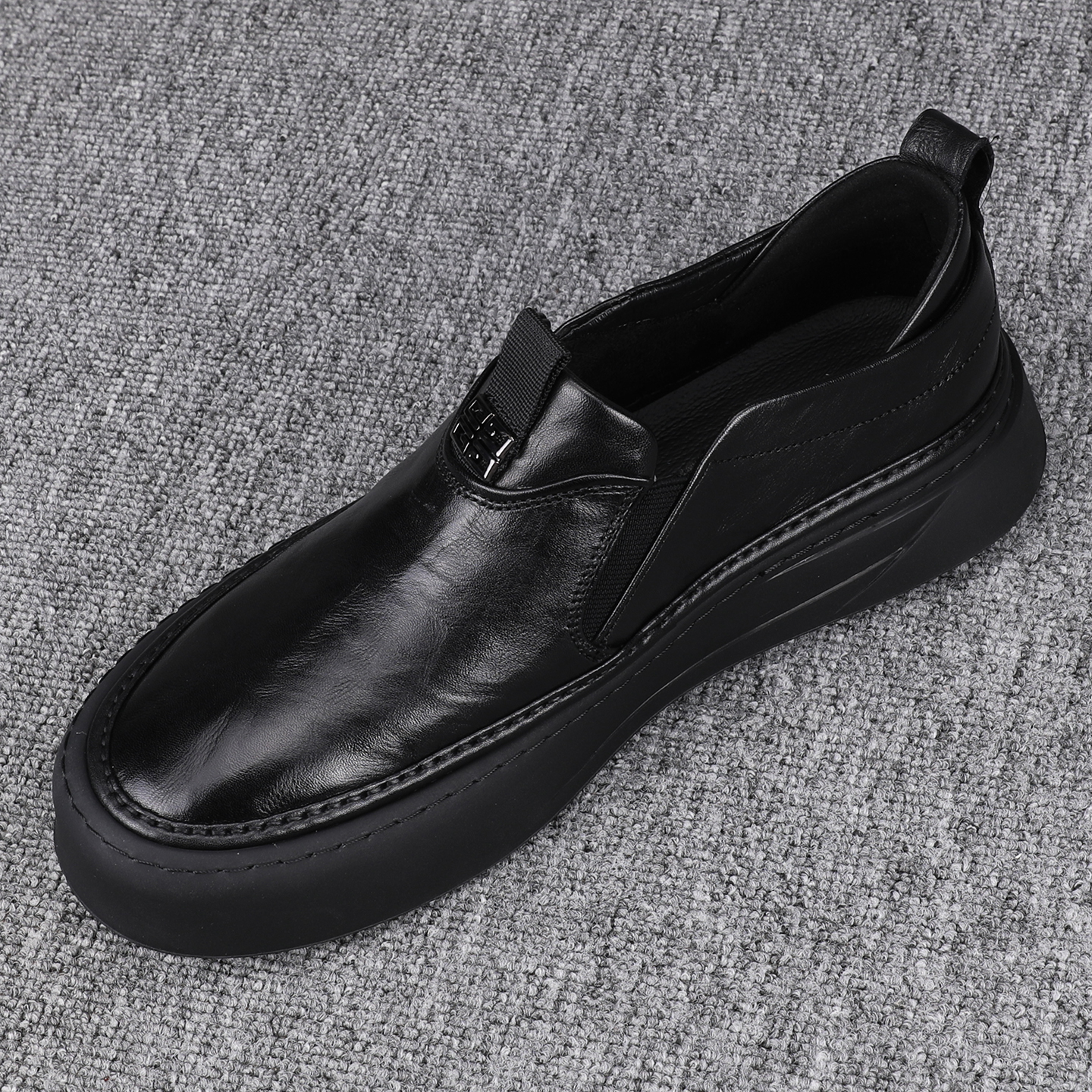 纯皮高端广州男鞋2025新款男士一脚蹬真皮乐福鞋厚底百搭休闲皮鞋