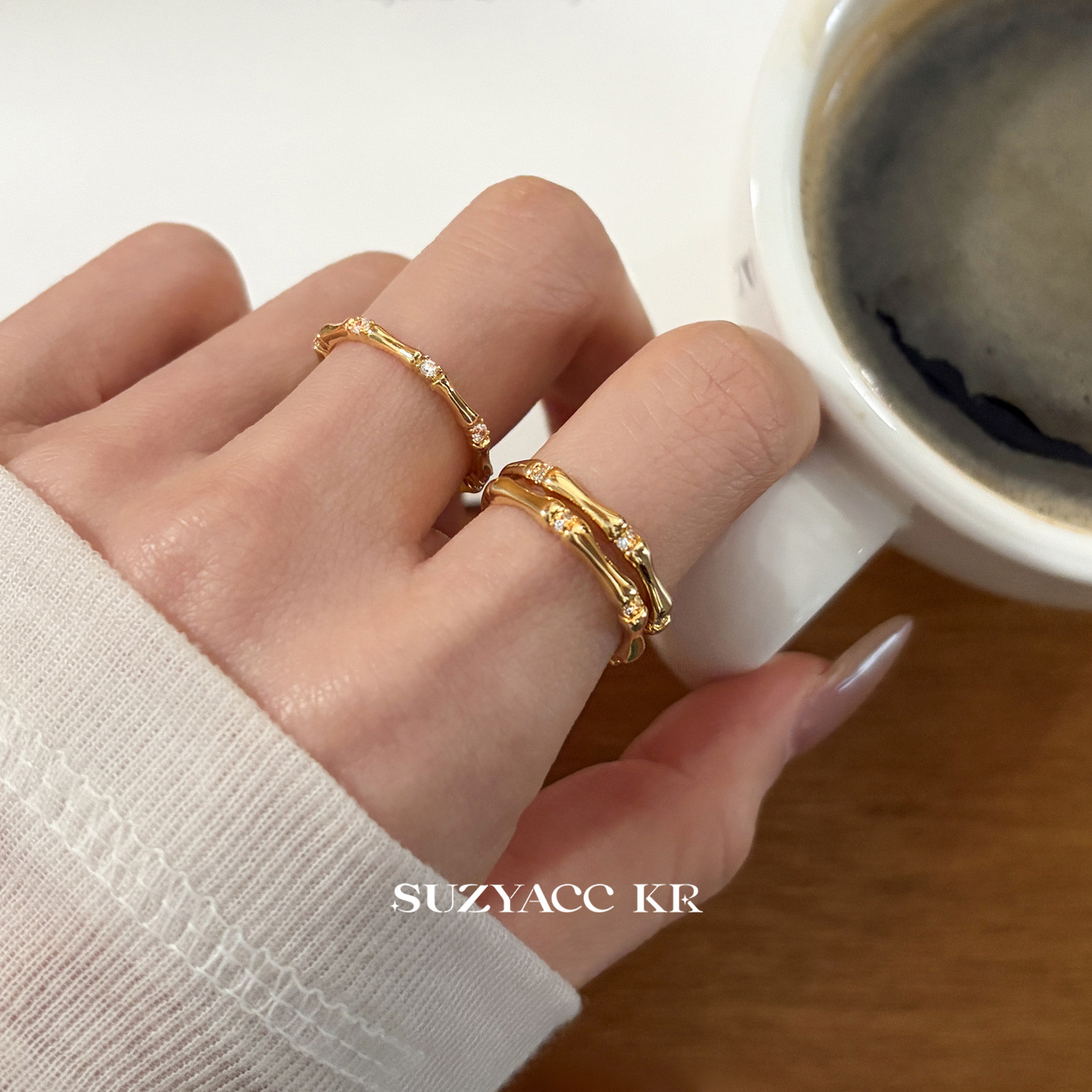suzyacc kr合成锆石竹节戒指小众设计通勤百搭开口食指戒时尚指环