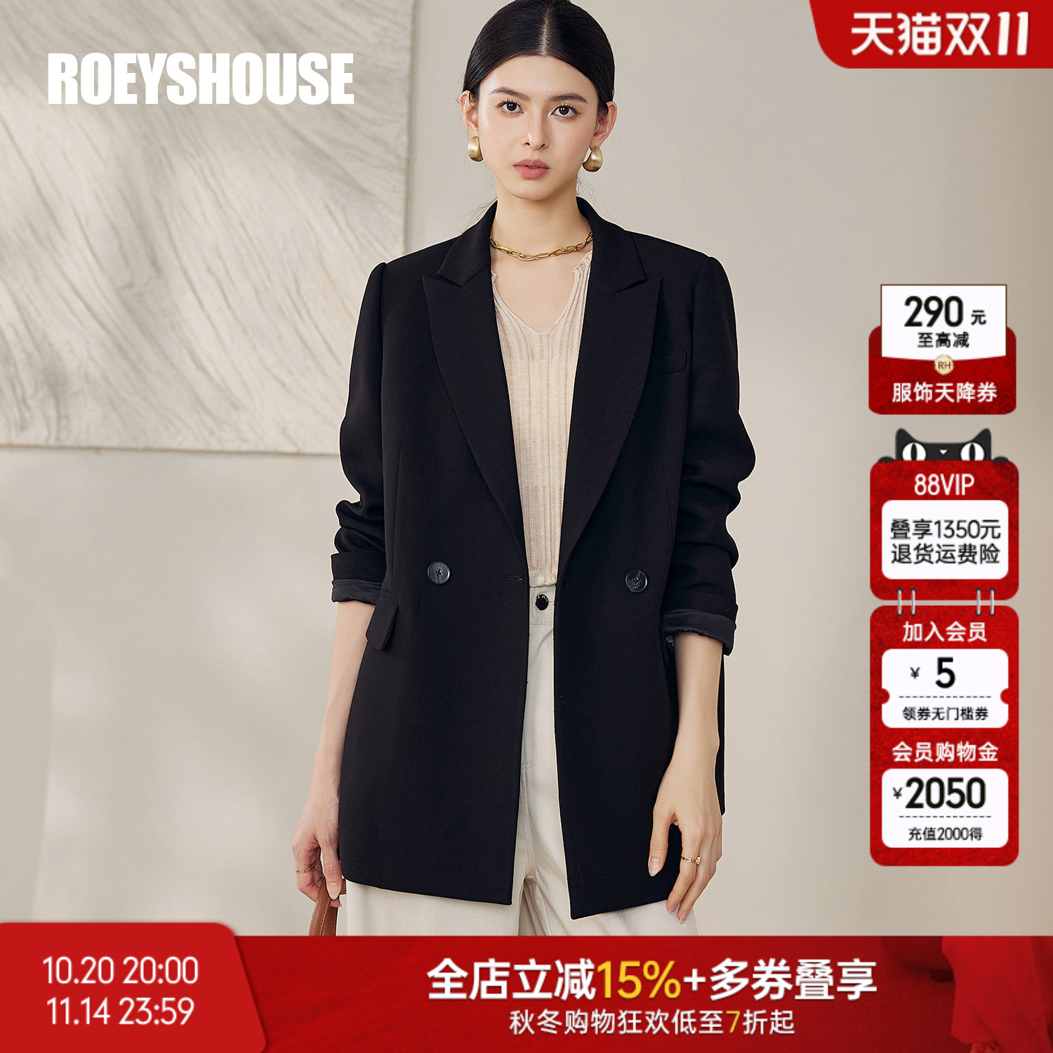 DPLAY2025年秋季新款OL气质黑色西装女双排扣宽松套装外套长袖