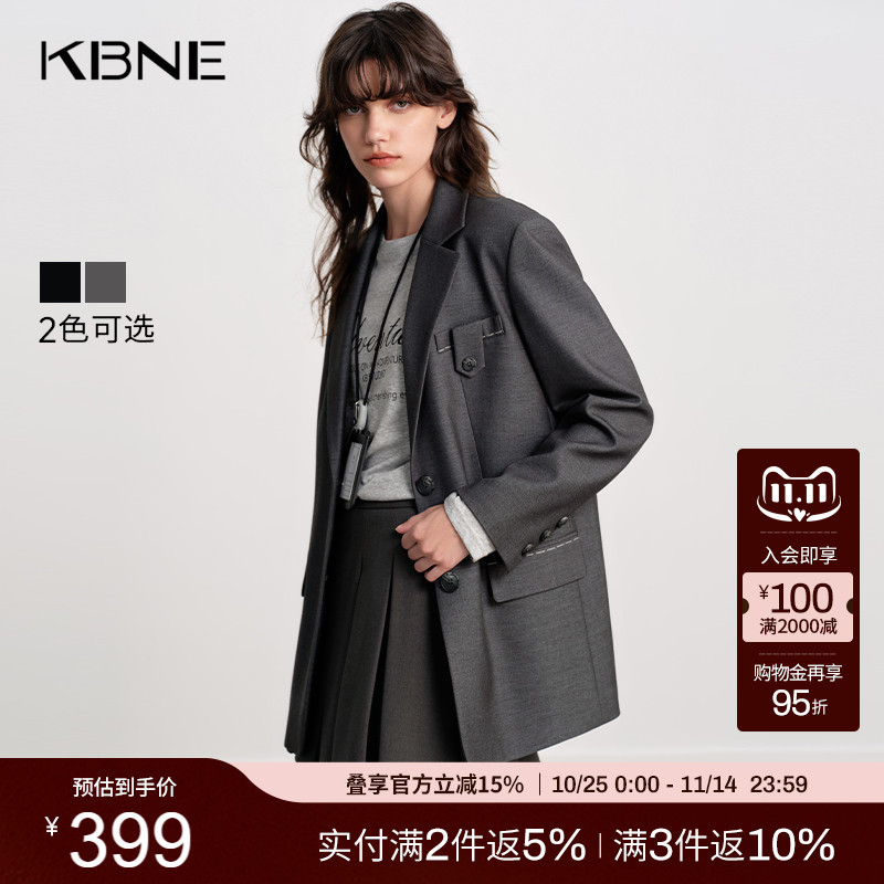 KBNE天丝羊毛高级感黑色西装女装2025秋季新款设计感休闲西服外套